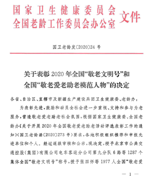 近日,由国家卫健委、全国老龄办授予的2020年全国“敬老文明号”向社会公布,中心老年科荣耀登榜,这是中心老年科继2018年荣获省“敬老文明号”后的又一项殊荣。
