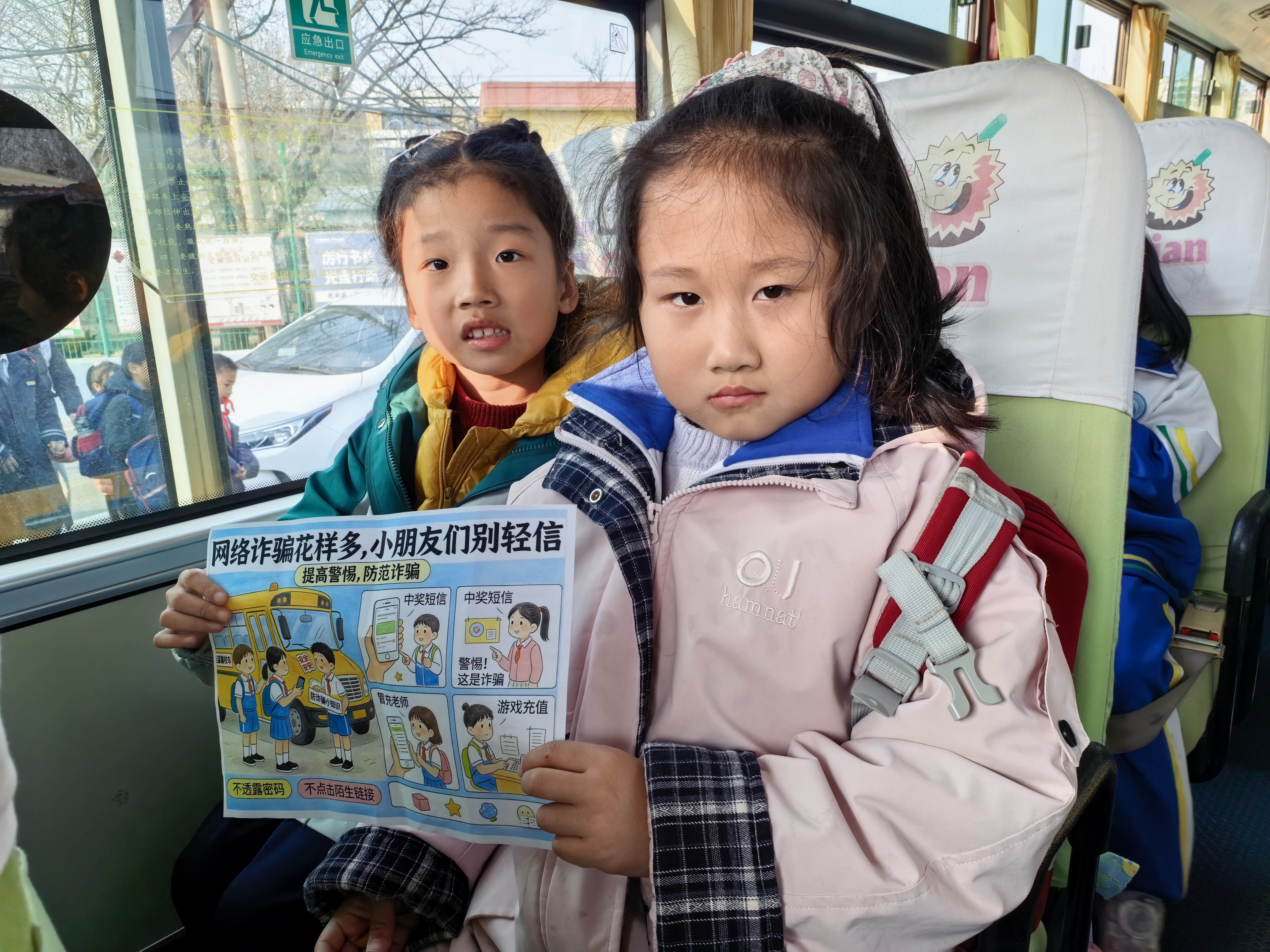 温馨校车高新区分公司随车照管员刘晓丽在活动中不仅引导学生们认清诈骗危害,还鼓励他们掌握“不轻信、不透露、不转账”的防范原则。学生们手持反诈宣传海报,在车厢内外认真学习、积极交流,不仅提升了自身的反诈意识,还主动向家人分享所学知识,争当家庭反诈“小宣传员”。这种“小手拉大手”的方式,有效扩大了反诈宣传的覆盖面和影响力。