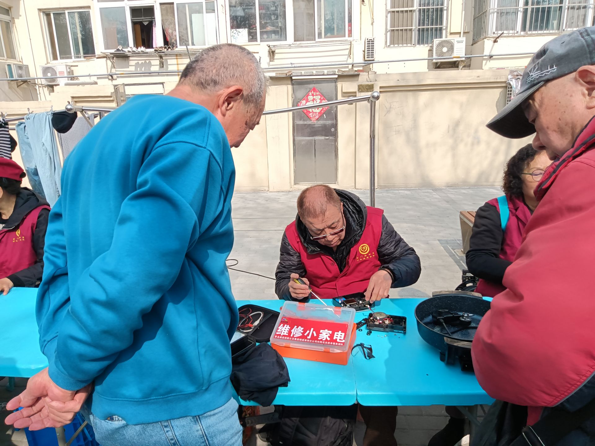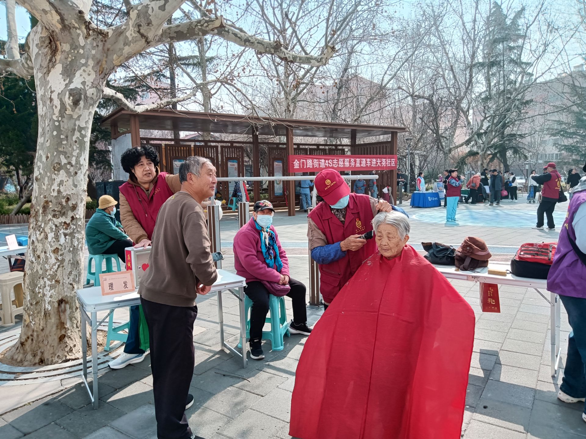 上午9时,大尧社区广场上已人头攒动。健康服务区内,医疗咨询、测血压、测血糖、中医问诊、推拿按摩、眼科检查、口腔咨询等摊位前居民有序排队;日常家居服务区里,义务理发、衣物缝纫、扒边、修包、修小家电、修自行车、配钥匙等服务同样备受青睐。