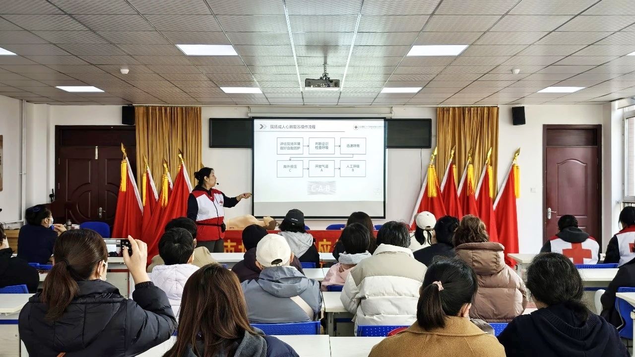3月25日,大港街道普吉社区联合市北区红十字会开展 AED+CPR 急救培训,50余名居民、职工及社区工作人员参加。讲师现场讲解AED使用、心肺复苏、海姆立克急救法等知识,通过理论与实操结合教学,强调 “黄金四分钟” 急救要点。此次活动提升了群众应急处置能力,营造了学急救、会急救、用急救的良好氛围。
