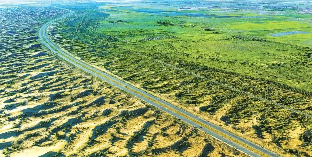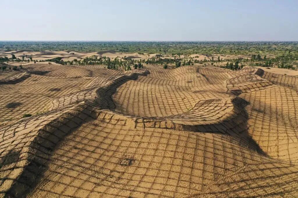 公开信息显示,库布其沙漠地处内蒙古自治区鄂尔多斯市北缘,是我国第七大沙漠,总面积2116万亩。20世纪80年代,区域内61%以上的面积是流动沙丘,植被覆盖率不到3%。经过几代治沙人的坚守和付出,库布其沙漠治理面积达6000多平方公里。治沙主要通过锁边林草带固沙、孔兑治理拦沙、光伏项目治沙、草原提质防沙等方式进行。