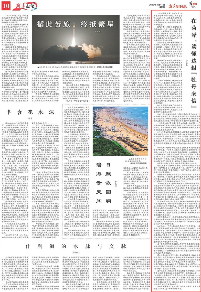 在菏泽赏花,如同展读一封封“牡丹来信”。花语之中,究竟藏着怎样的历史风烟和时代潮音?又是一种什么力量,让昔日宫廷雅苑中的富贵之花,演化成走入普罗大众生活的经济之花、文脉之花、精神之花、幸福之花?且让我们在这些“牡丹来信”中细细品读。