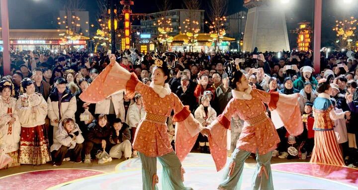 2026年2月18日晚,演员在河南省洛阳市隋唐洛阳城应天门南广场表演。新华社发(高山岳 摄)