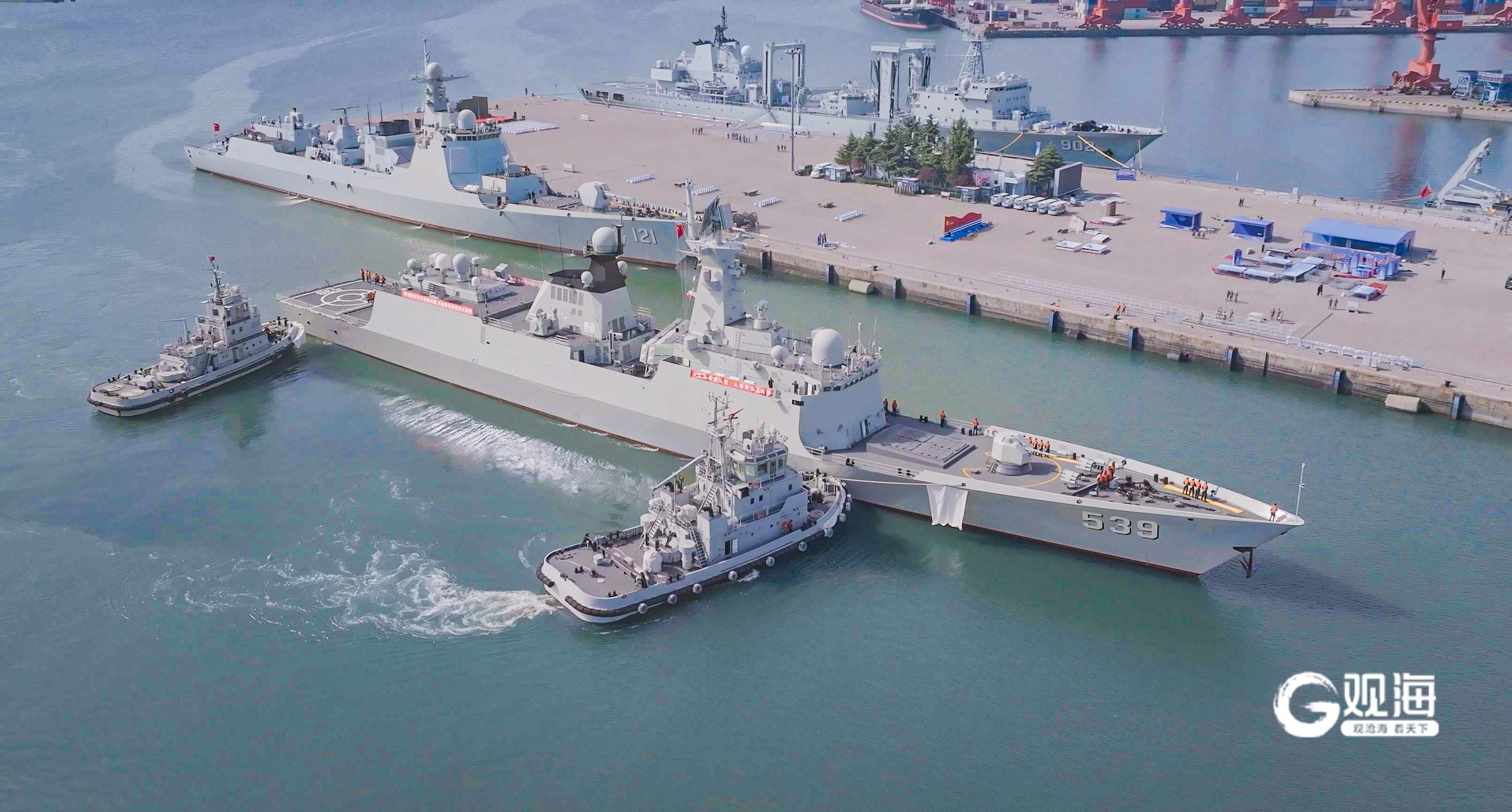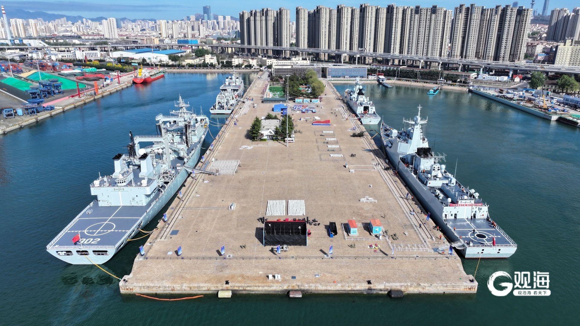 战舰列阵,旌旗飘扬。截至4月20日,在山东青岛和辽宁大连,面向公众开放的各型舰艇均已抵达指定港口。其中,052D型导弹驱逐舰齐齐哈尔舰、054A型导弹护卫舰芜湖舰、903型综合补给舰东平湖舰、926型综合援潜救生船阳澄湖船将在青岛港三号码头开放,052D型导弹驱逐舰乌鲁木齐舰、054A型导弹护卫舰潍坊舰将在青岛奥帆中心码头开放。官兵们认真组织舰艇清洁维护,悬挂满旗、满灯,设置参观路线,练习引导讲解词,以崭新面貌迎接公众的到来。