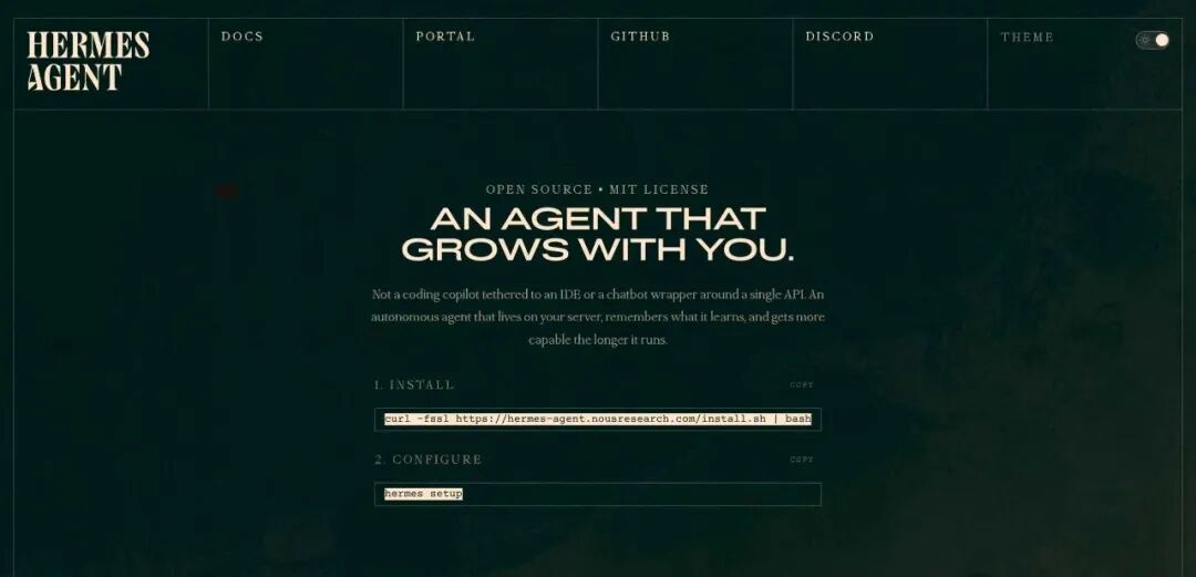 Hermes Agent(赫尔墨斯智能体)官网图片