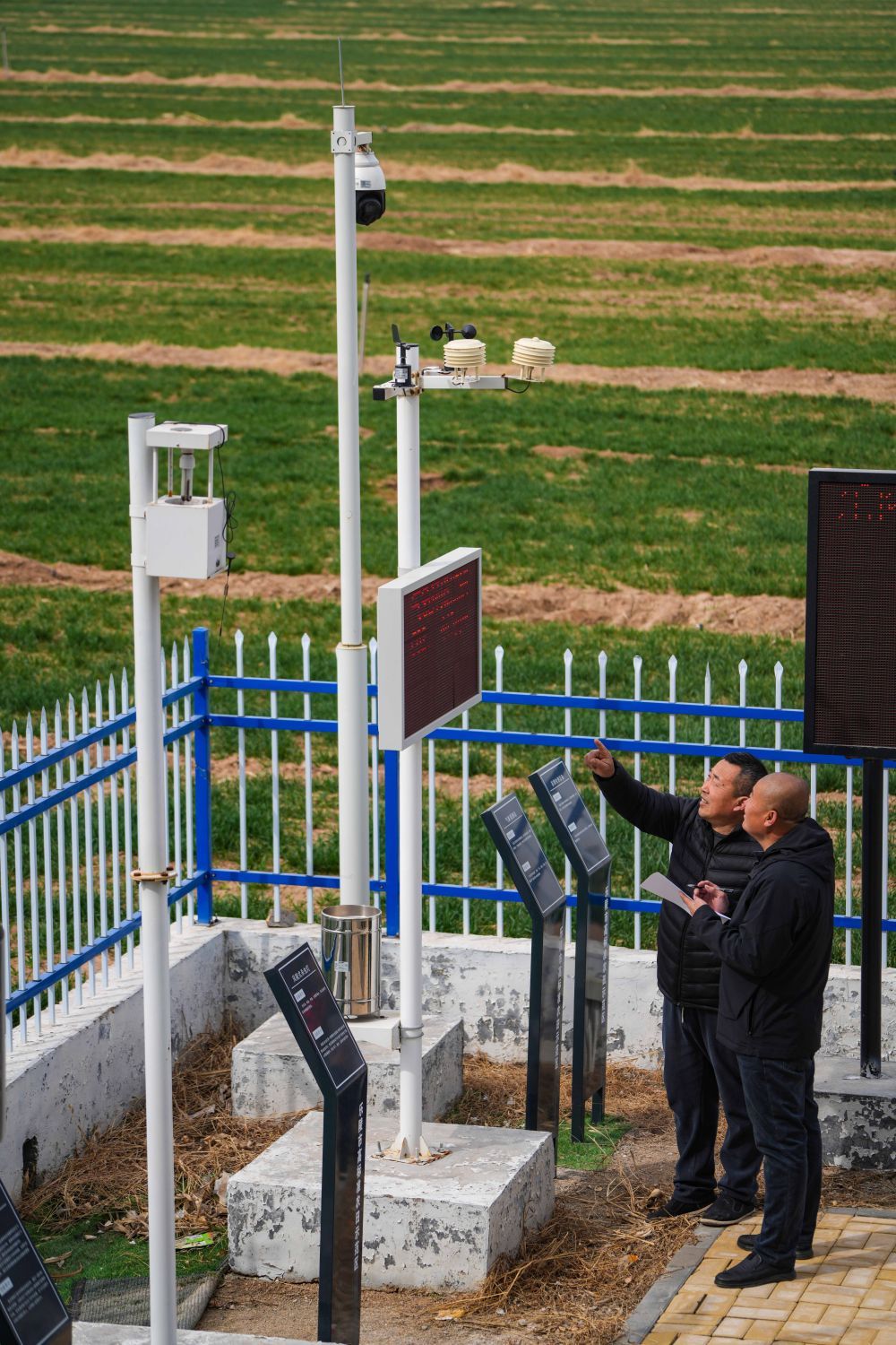 2025年3月14日,工作人员在山东省乐陵市高标准农田示范区智能农田技术服务站查看农情监测数据。新华社发 (贾鹏 摄)