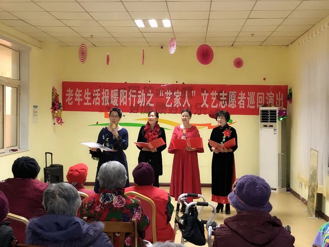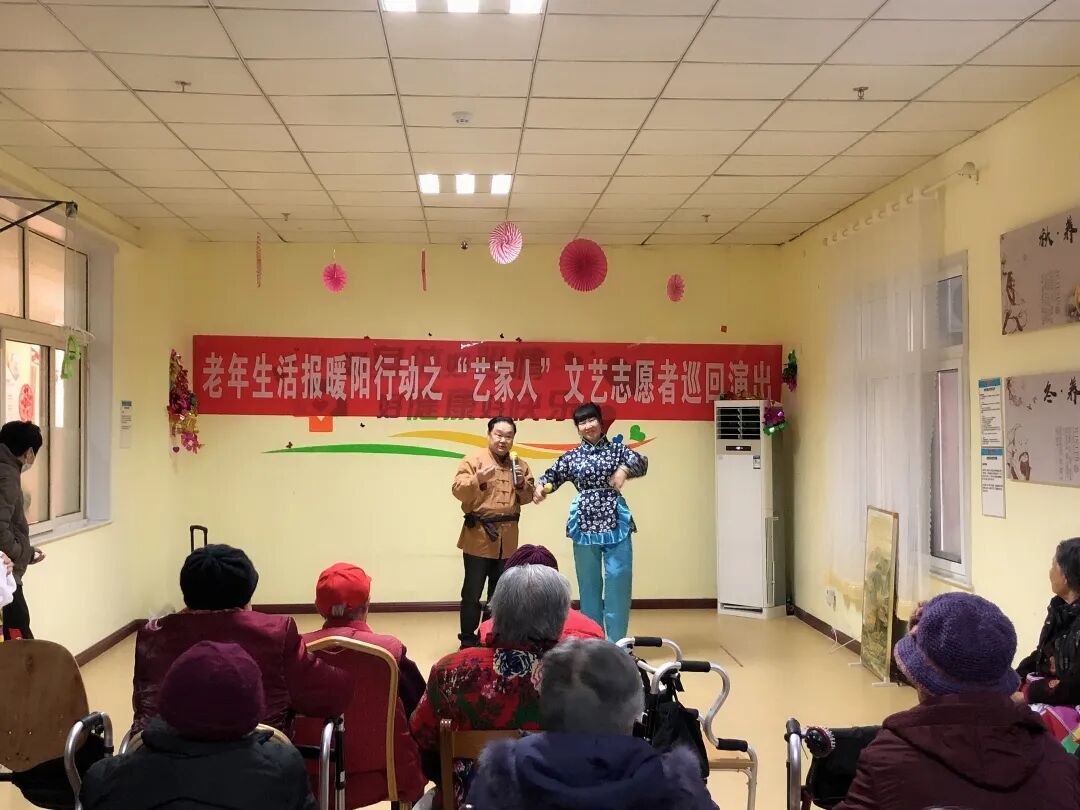 青岛日报社/观海新闻12月31日讯 “老爸老妈,提前祝你们新年快乐。”12月30日,天气严寒,但位于青岛市李沧区的九洲福老年公寓里却充满了欢声笑语,《老年生活报》2020暖阳行动“艺家人”文体艺术总团文艺志愿者团队巡回演出第一场活动正在此进行,志愿者们带着精彩的的节目,看望慰问居住在这里的老年人,送去冬日的暖阳和真挚的祝福。