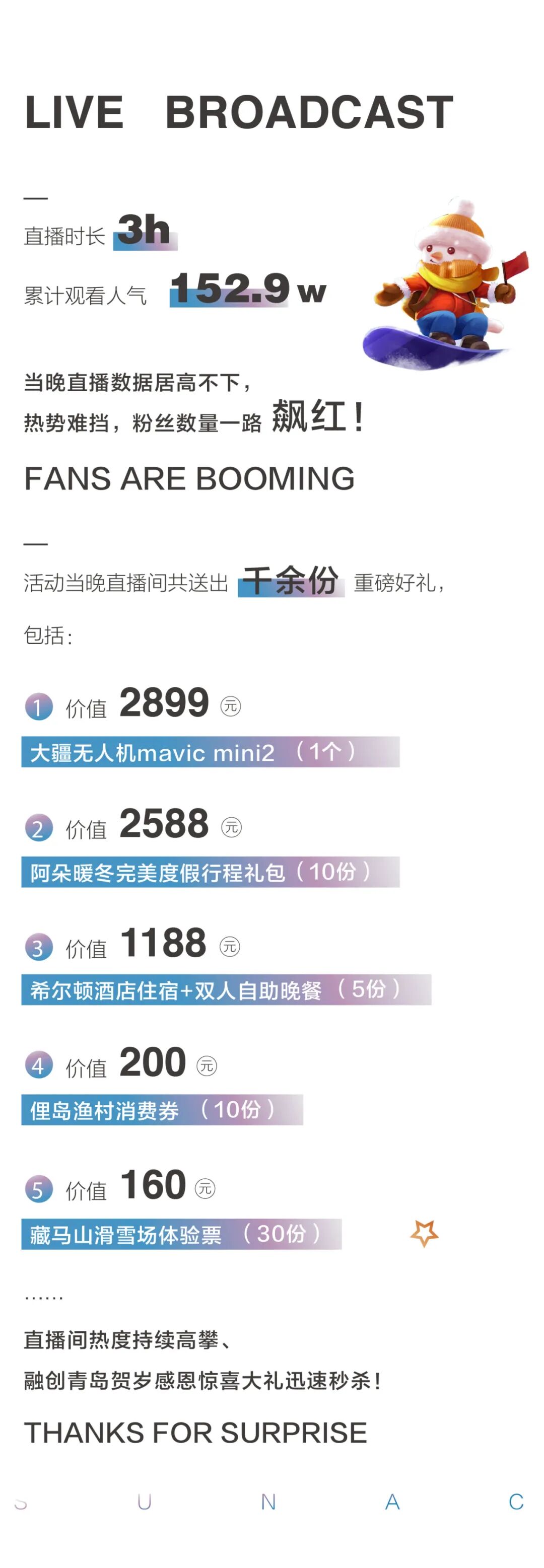 暖冬,是四季当中对美好时光的总结,是跨越山海启新下一个阶段的赤诚归心。融创青岛4载深耕,澎湃不止,值此2020岁末之际,以一场「融粉暖冬微旅行」告白融创家人们的厚爱。山海壮美不言,岁月砥砺前行。融创青岛感谢一直以来关注、支持我们的每位融粉,2021年,让我们携手同行,乘着欢乐音符,奔向美好!