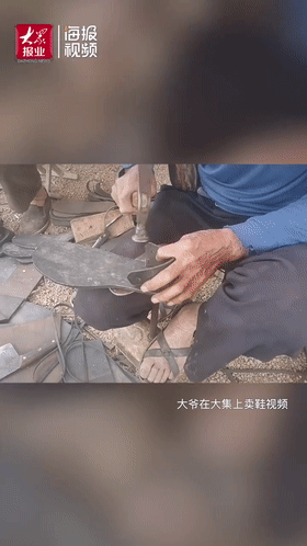 解世全是日照莒县桑园镇梭庄村人,用废旧汽车轮胎做凉鞋已50多年。近日有人将解世全做凉鞋的过程用手机拍下并上传到社交网络,获得破万的点击量,解世全因此成为一名“网红大爷”。“如果有年轻人来学,我愿意免费教学。”