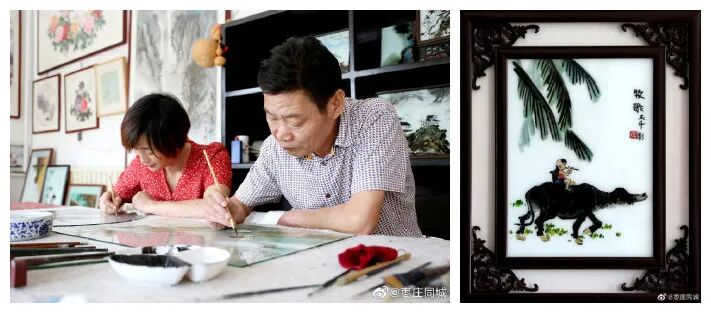 玻璃翻画是翻面作画正面成形的民间艺术。
