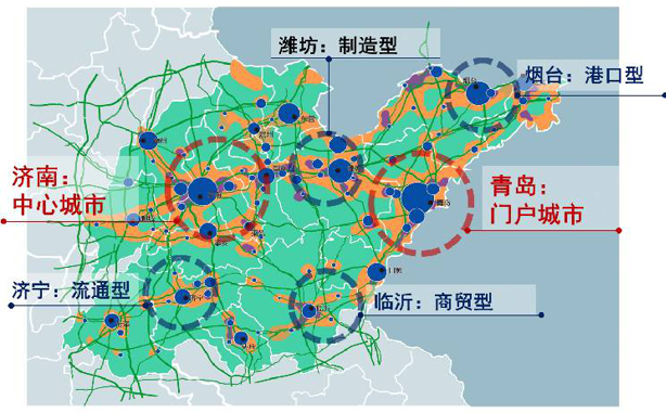 整座青岛就像是一座星云,从大城市变成更大的城市,是不断膨胀发展的,目前还在壮大期。作为山东的第一大经济体,竞争格局首先是要放在全国视野来看待,往西到京沪线上的其他山东城市,是青岛的竞合关系,济南、临沂都是人口大市、商贸大市,会为青岛发展提供青壮人口、下游产业等支撑度,青岛发展两大关键,往西承接资源流入,往南与长三角经济对接,交通枢纽的作用就尤为重要。