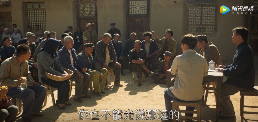 嘴上气哄哄,身体却很诚实地支持儿子的动员工作。拉着全村人开会,还主动带头参与吊庄。