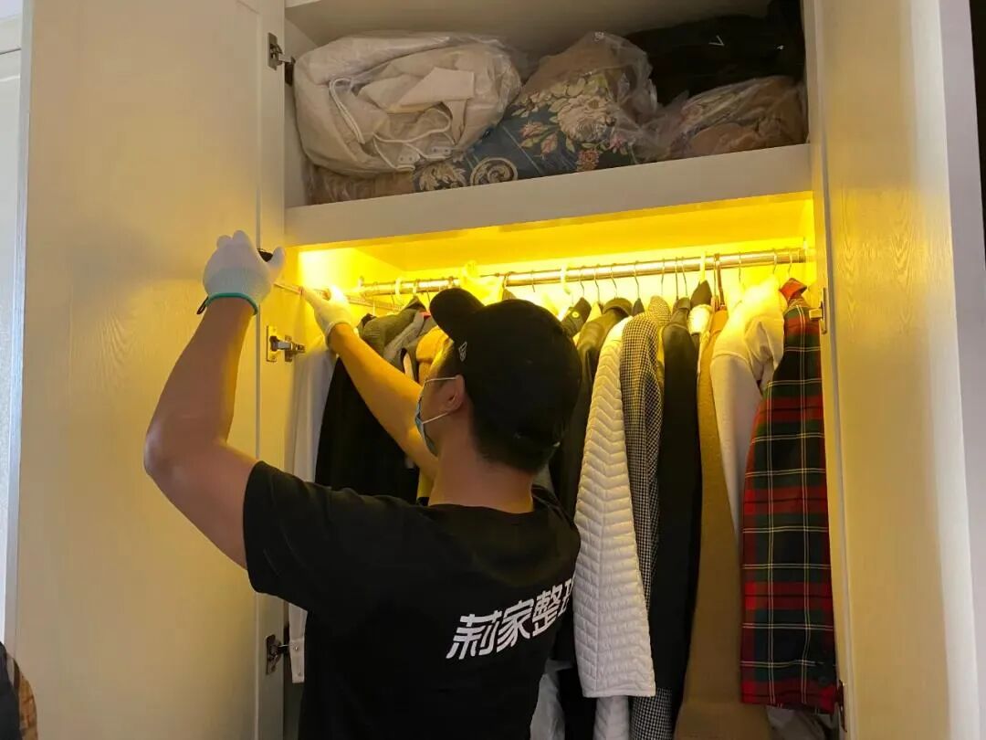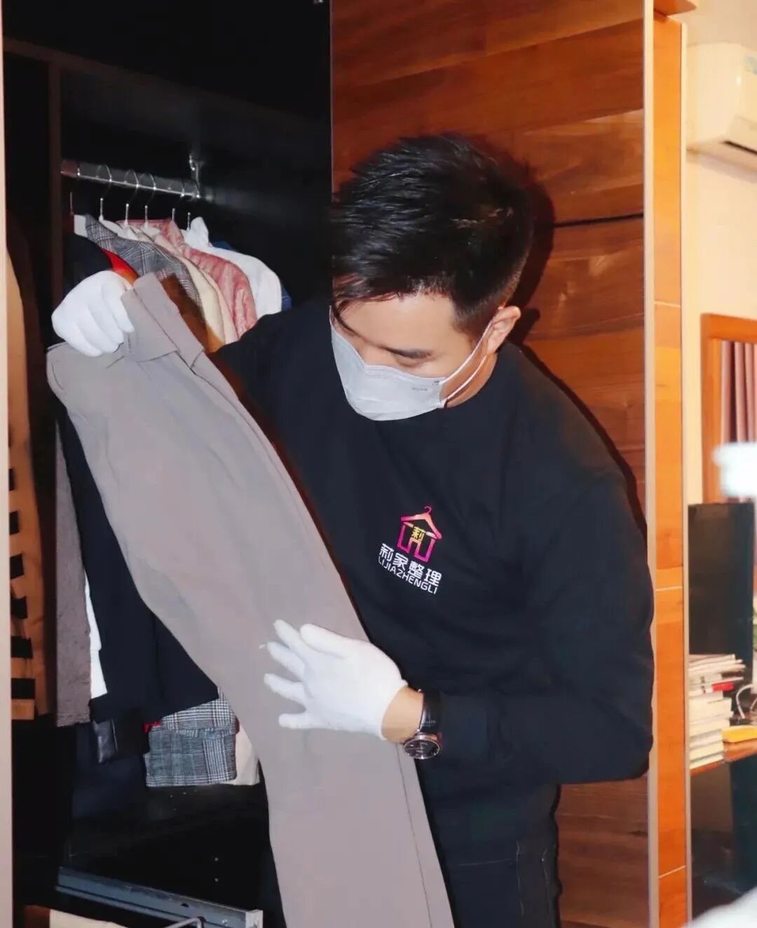 “我们有专门的工作服,鞋子,拉杆箱。从到客户家的第一刻开始,就穿好全套装备,戴上口罩和手套,消毒液放在每个整理师的随身小包里,包里还有卷尺、针线、剪刀、小夹子、一次性手套、湿巾等物件。”今年夏天,整个城市在热浪的裹挟下闷得发慌。而此时的孙天超已经有了一个十几人的固定班底,很多人都是他手把手教出来的。他们每天拉着整理需要的物品穿梭在市里的各大小区。
