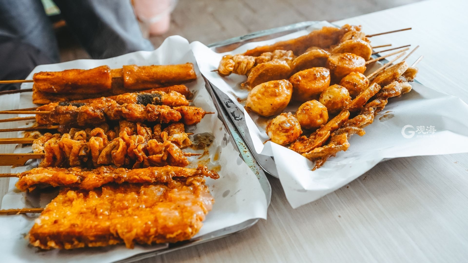 - 还记小时候揣着钢镚儿到街边小推车上买炸串的日子吗?一晃二十年,炸串也逐渐成为了青岛老少皆爱的特色美食。青岛日报社/观海新闻记者 王雨欣 摄
