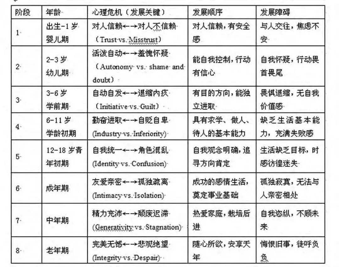 人格发展是一个逐渐形成的过程,人的一生发展划分为八个阶段。