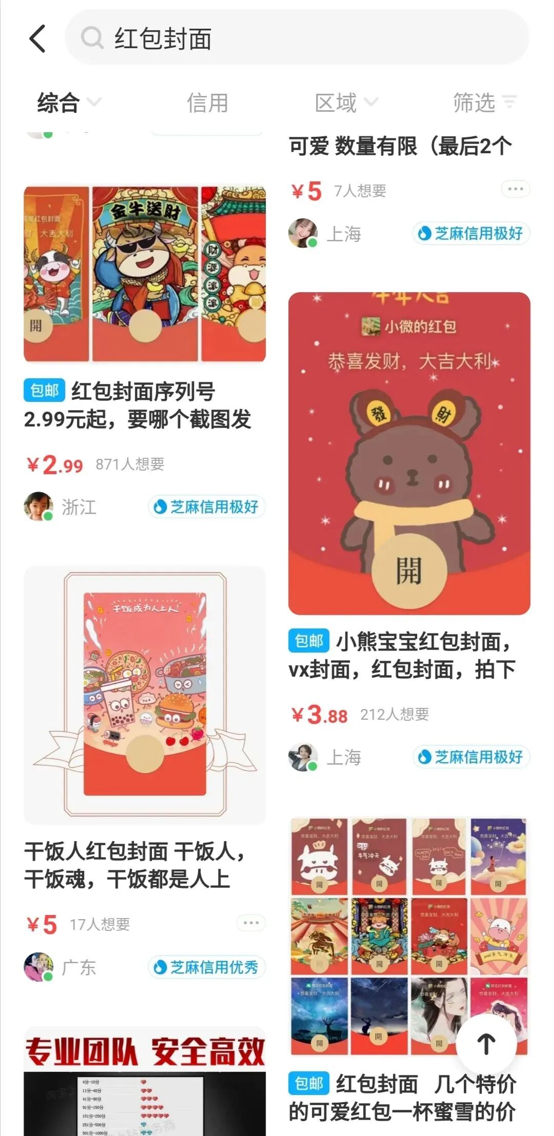 警惕有偿出售的微信红包封面 在某二手商品交易平台上搜索红包封面,可以看到不少卖家在卖微信红包封面的序列号,定价数元到数十元不等。 序列号是微信红包封面的发放方式之一。微信红包封面的发放方式包括领取二维码、领取序列号、领取链接,定制方可根据活动场景、用户群体、领取规则等选择合适的发放方式。