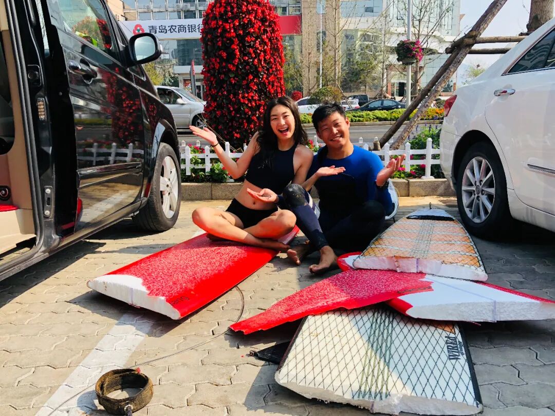每逢假期,很多学员催着他回青岛授课,从接触冲浪到现在,他已经教了近千名学生。