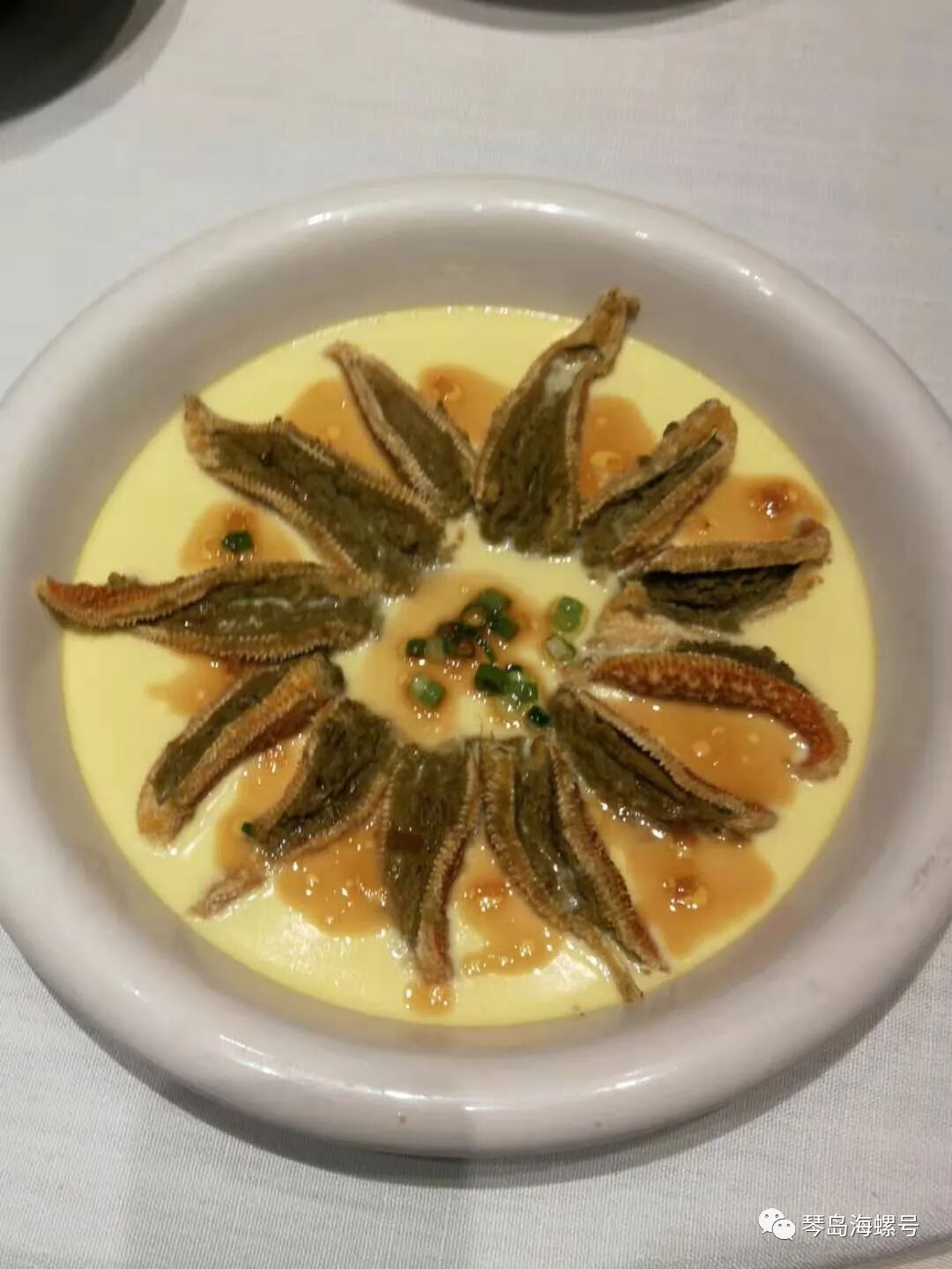 海星蒸熟,取出海星籽。鸡蛋加水按照1:1的比例打散。蒸锅开锅后,放入海星籽和鸡蛋液,上锅蒸12分钟即可。吃的时候配豉油汁。