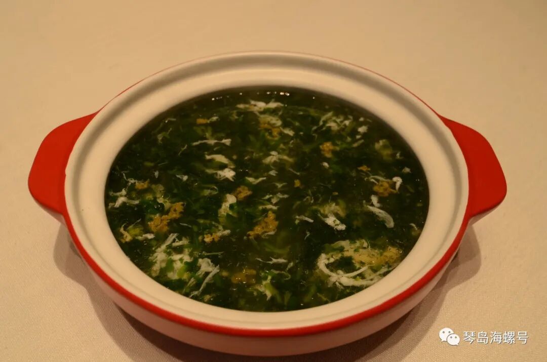 荠菜洗干净焯水过凉之后切碎,活海星取出海星籽备用。锅烧热加油、葱姜末爆出香味,加荠菜末炒至半熟,加水烧开,打入蛋清或者全蛋,出锅的时候淋入香油加盐调味即可。