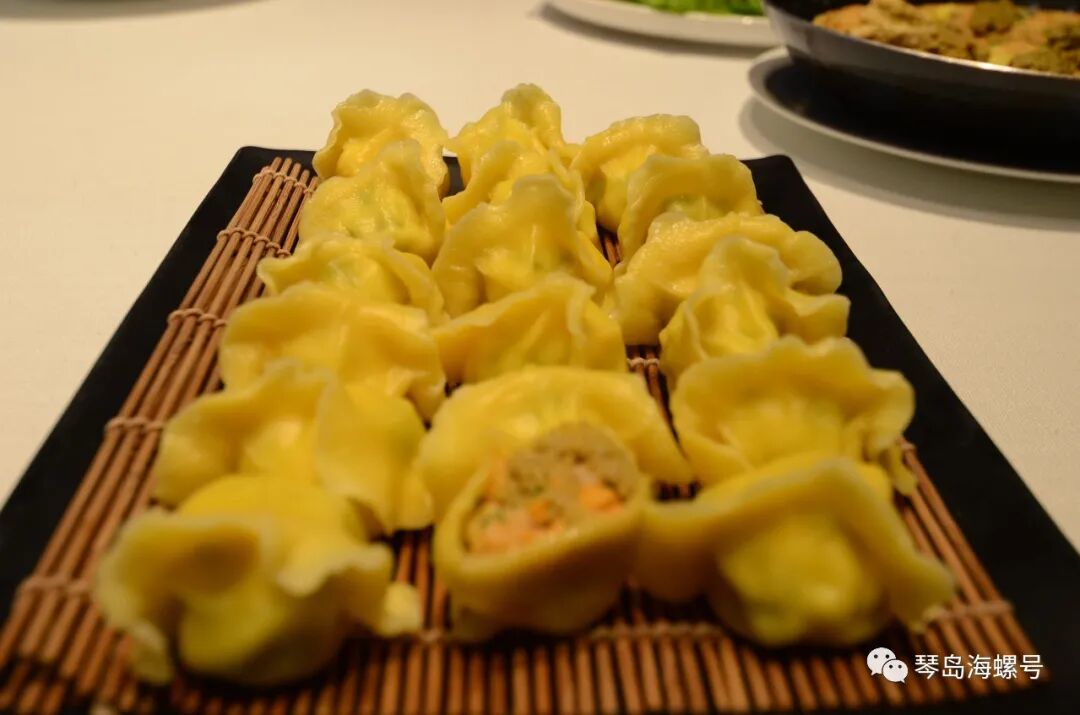 猪肉斩成泥,活海星取出海星籽,按照1:2的比例和匀,加入葱姜末和食盐调味,包成水饺下熟即可。(观海新闻/青岛晚报 记者 单衍春)