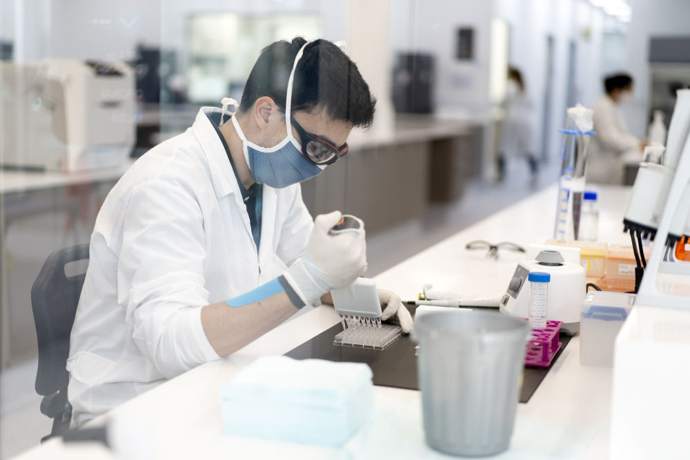 8月14日,科学家在阿根廷布宜诺斯艾利斯省加林市的新冠疫苗研究实验室内工作,准备生产由英国牛津大学和英国制药公司阿斯利康合作开发的新冠疫苗。(新华社发 马丁·萨巴拉摄)