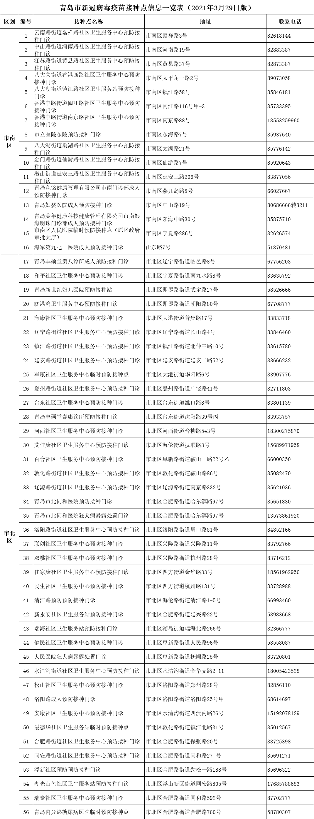 最新最全!青岛市新冠病毒疫苗接种点信息一览表来了