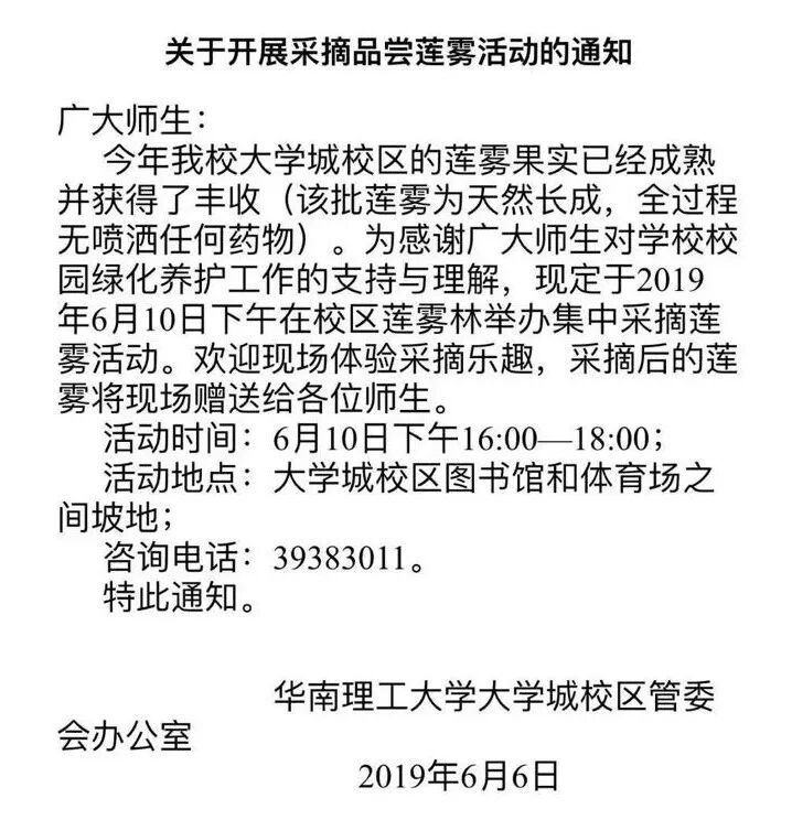 2019年,华南理工大学又开始常发公告让师生们摘取莲雾食用。