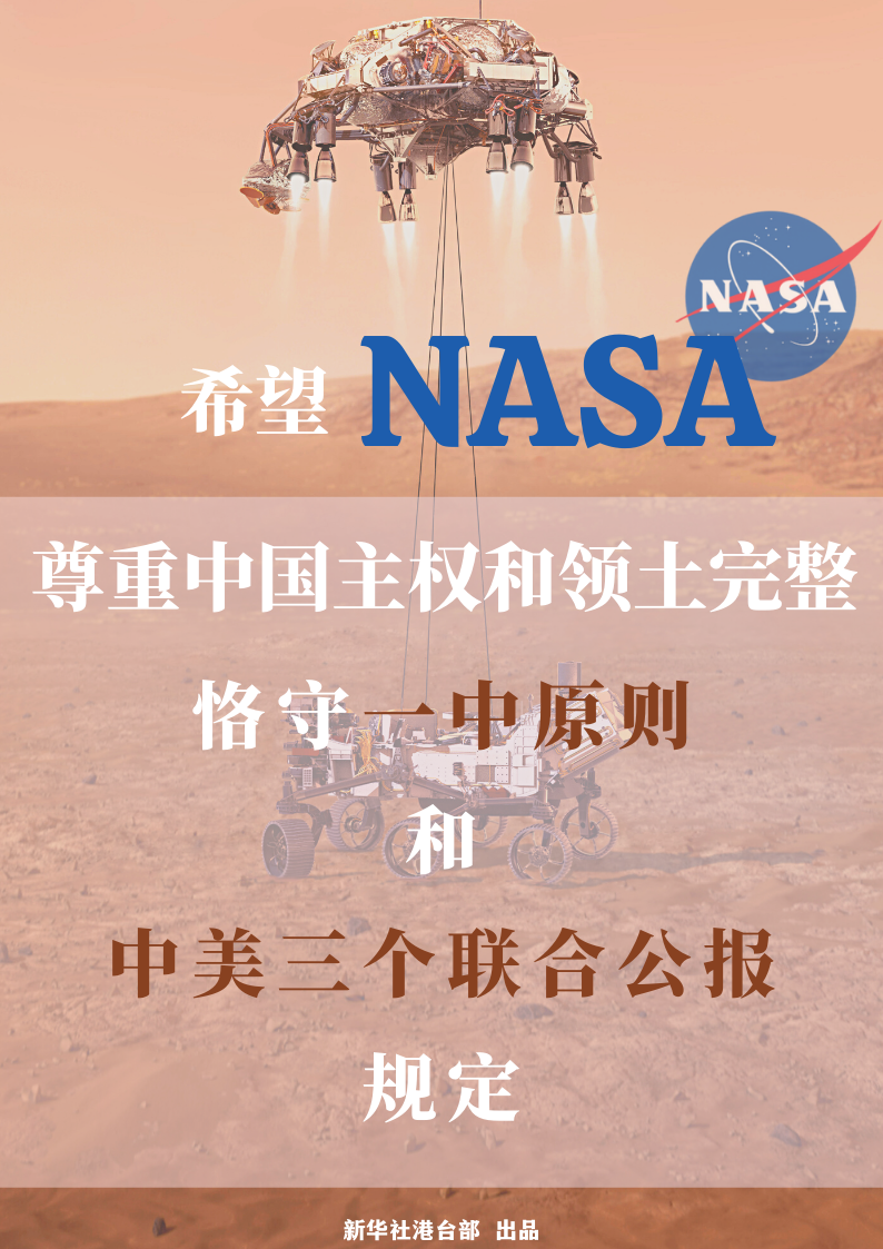 针对美国国家航空航天局(NASA)日前发起“火星船票”活动时在官网将“台湾”单列为“国家”,国台办发言人朱凤莲31日应询指出,台湾是中国领土不可分割的一部分。希望NASA作为美联邦政府的机构,尊重中国主权和领土完整,恪守一个中国原则和中美三个联合公报规定,尽快改正相关错误。 责任编辑:孙丽荣 0