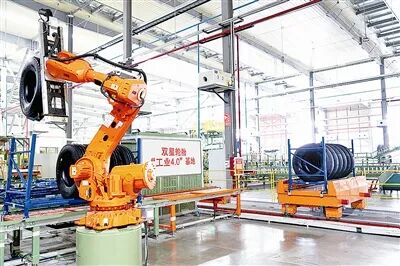 2016年,双星集团建立了全球轮胎行业第一个全流程“工业4.0”智能化工厂,实现了传统轮胎行业的转型升级。在整个工厂生产流程中,AGV小车自动穿梭运送物料,堆垛机器人自动输送仓储,智能机器人分布在各个环节,实现了智能排产、智能送料、智能仓储。双星独创了MEP智能信息匹配系统,以实现物、人、设备、位置的信息智能匹配。