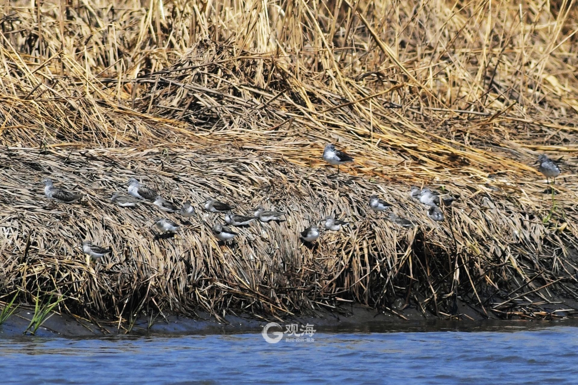 - 成群青脚鹬在青岛城阳墨水河入海口湿地栖息。观海摄影师 王海滨 摄