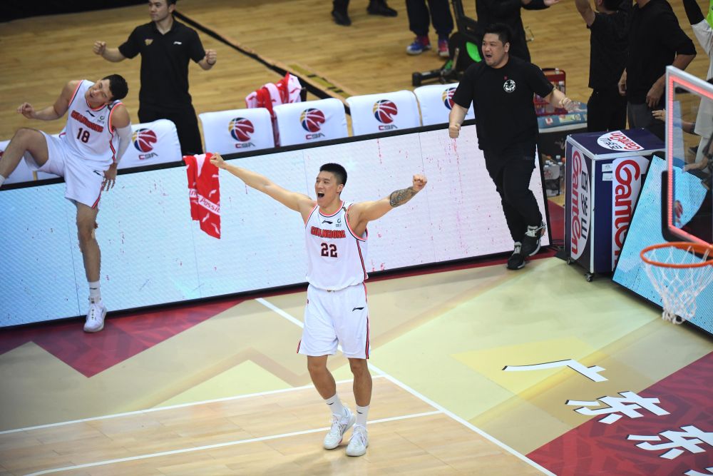 广东队球员赛后庆祝。新华社记者 沙达提 摄 刚刚结束的2020-2021赛季中国男篮职业联赛(CBA)总决赛第三场中,广东队以110:103加时击败辽宁队,总比分2:1赢得队史第11个CBA总冠军。 责任编辑:荣潇 0