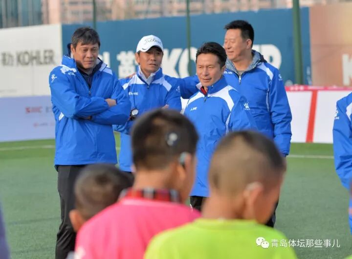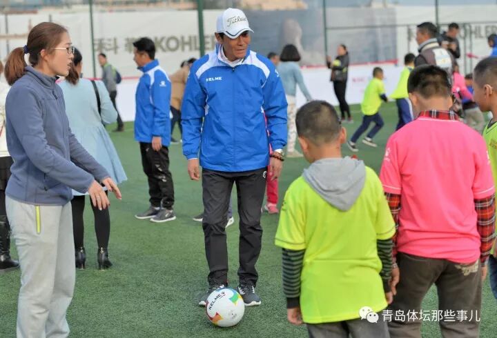 ▲2017年11月13日,高峰曾与范志毅、彭伟国等前国脚现身位于香港东路与海尔路交会处东北角的上实中心球场,与来自青岛市中心聋校的20名孩子以及东清足球俱乐部、伟大足球俱乐部的足球少年们交流互动。