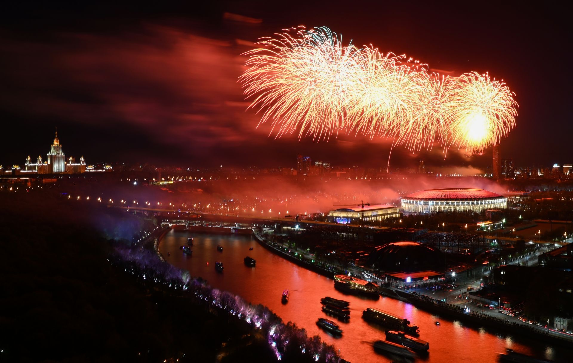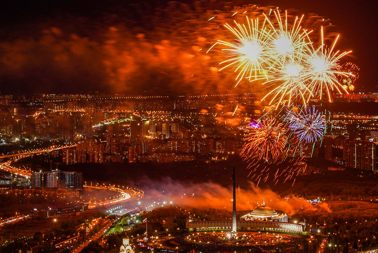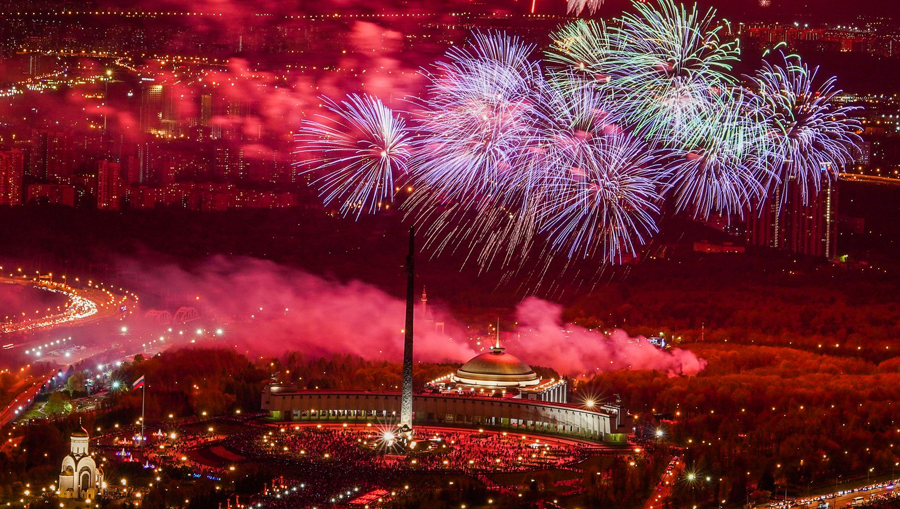 俄罗斯首都莫斯科燃放烟花,纪念卫国战争胜利76周年。 新华社/卫星社