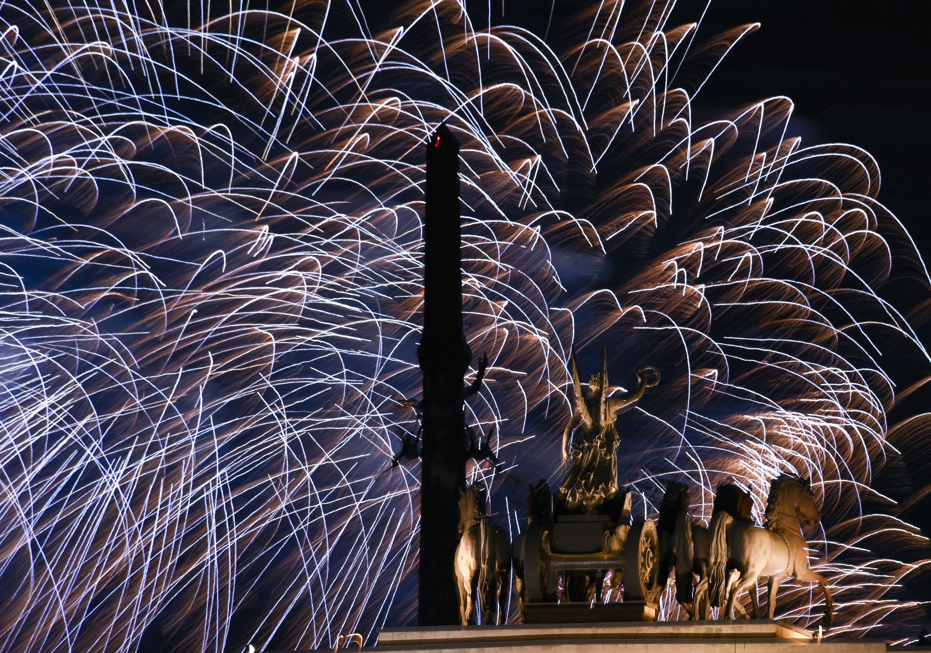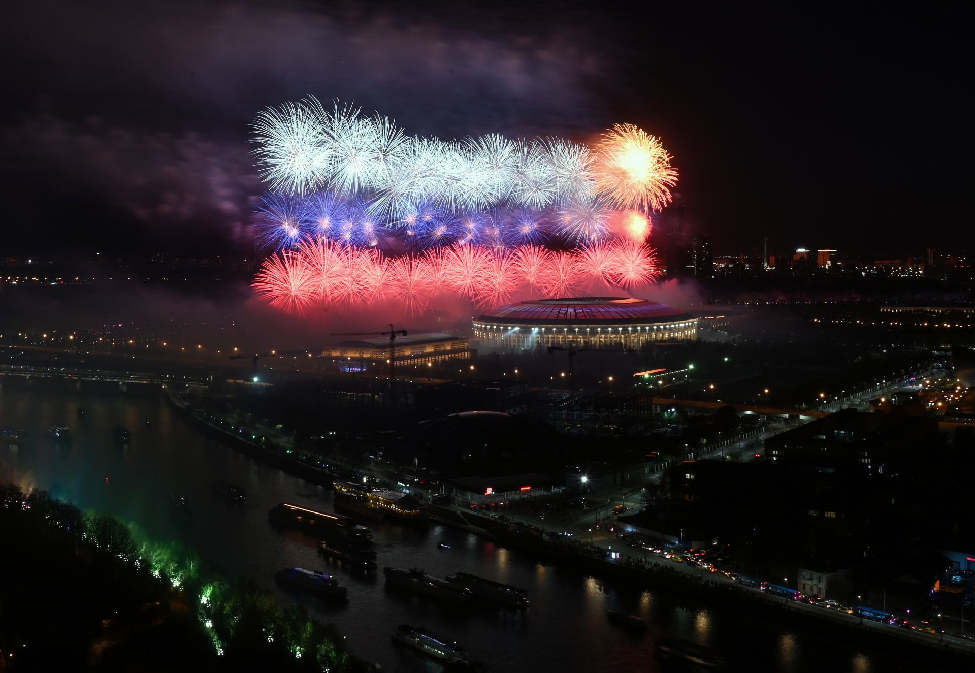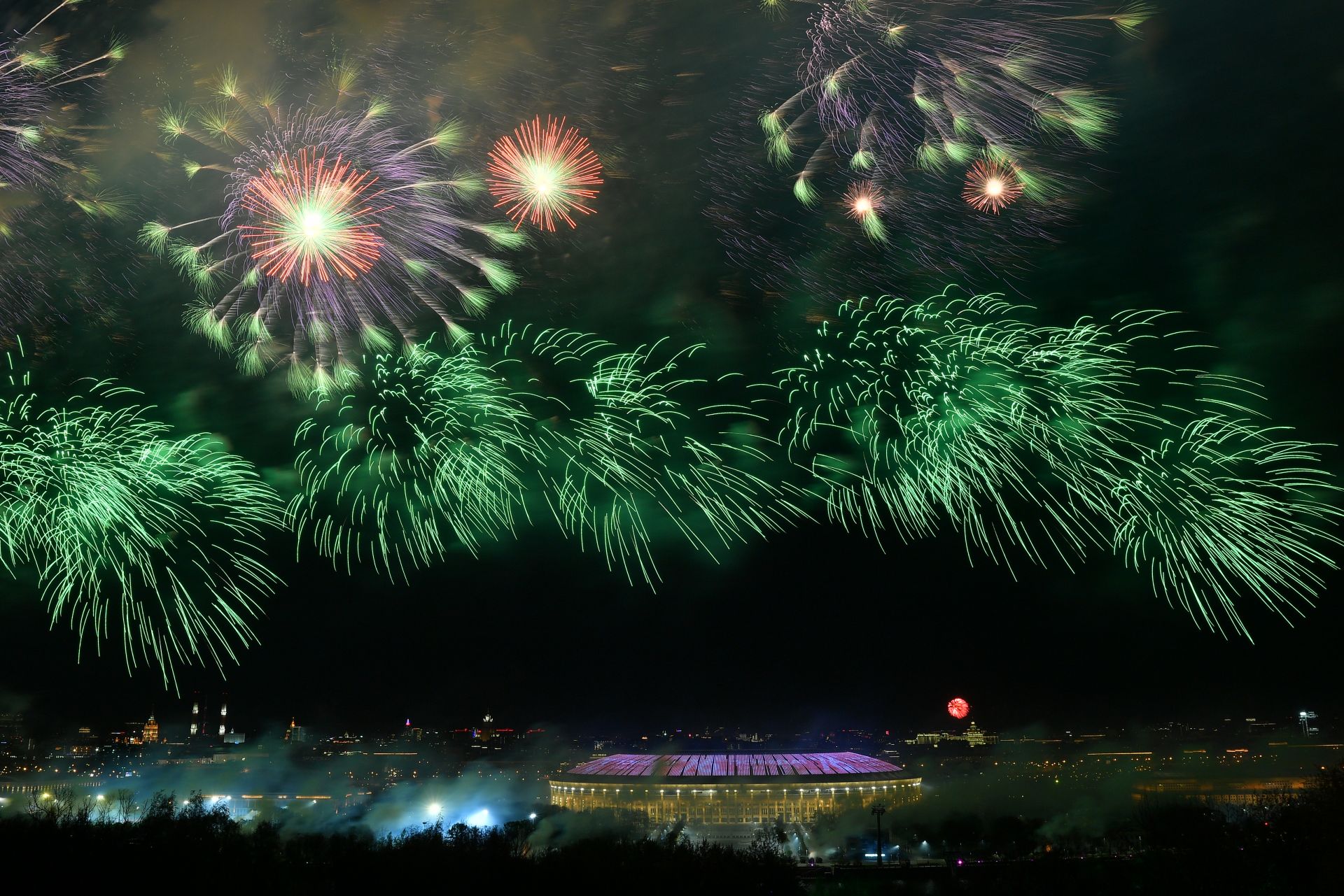 俄罗斯首都莫斯科燃放烟花,纪念卫国战争胜利76周年。 新华社/卫星社