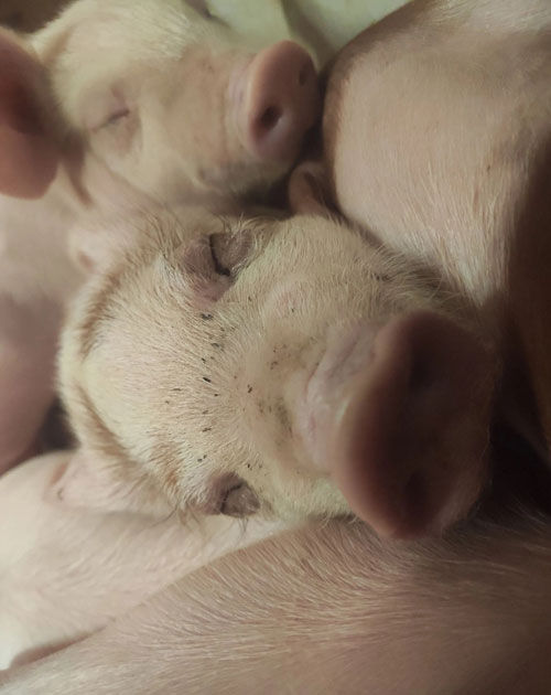 刚死去的小猪是最好捡的,可以整个拿起来装袋。等腐烂到一定程度,拿起的时候就可能断成两节,有的腐烂到化成一摊碎渣粘在地面上,还会被其他小猪拱得零零散散。