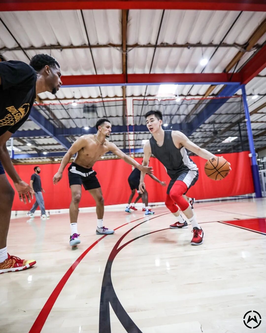 本赛季CBA联赛结束后,郭昊文代表山东男篮出战了陕西全运会的预赛,5月奔赴美国进行训练,与杰伦·萨格斯、埃文·莫布里等2021年NBA热门新秀一起进行特训。如今,高大的控卫在NBA愈发吃香,无限换防是当下流行的防守体系,两米出头的郭昊文能从1号位防到3号位,这正是他参选的优势所在。郭昊文表示,未来几周,他会更加刻苦训练,适应高强度对抗,为参加选秀做准备。