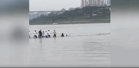 被冲入距离岸边数十米的江水中
