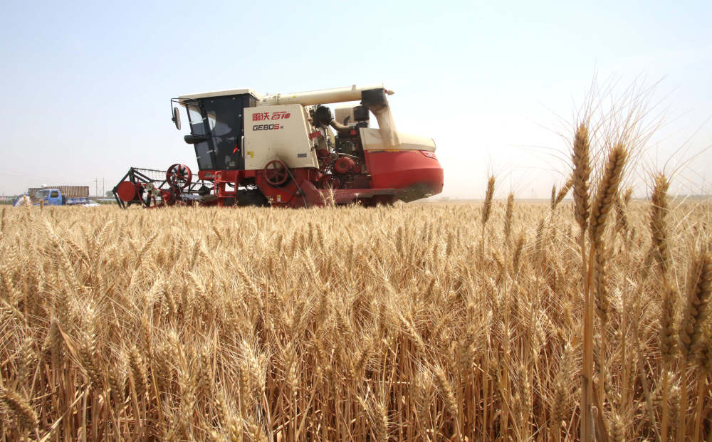 收割机在河北省邯郸市永年区西苏镇苏固村收割小麦。新华社发(胡高雷 摄)