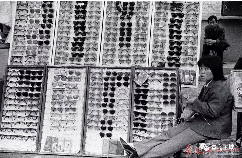 △ 1985年,即墨路小商品市场,一个卖眼镜的摊位。(王群 摄)