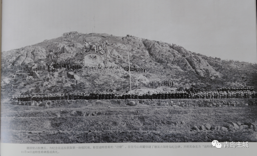 △德国侵占胶澳后,为纪念在远东获取第一块殖民地,在信号山南麓修建了德国占领青岛纪念碑。图为1898年。