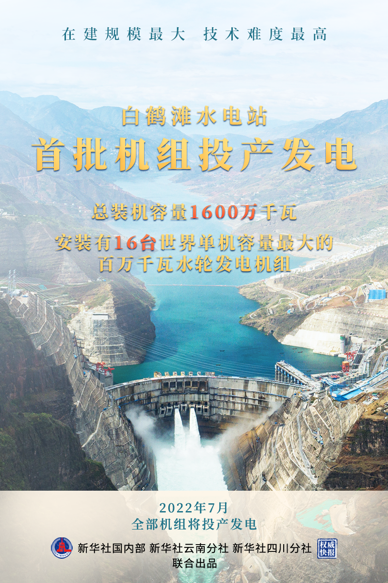 6月28日,白鹤滩水电站首批机组正式投产发电