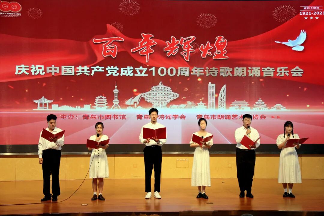6月26日上午,由青岛市图书馆、青岛市诗词学会、青岛市朗诵艺术家协会共同主办的“百年辉煌”——庆祝中国共产党成立100周年诗歌朗诵音乐会,在青岛市图书馆演播大厅隆重举行。