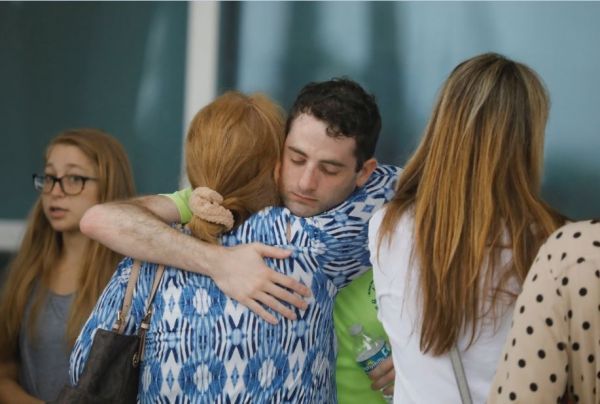 6月24日,迈阿密大楼坍塌失踪者亲友正在拥抱安慰彼此。(路透社)