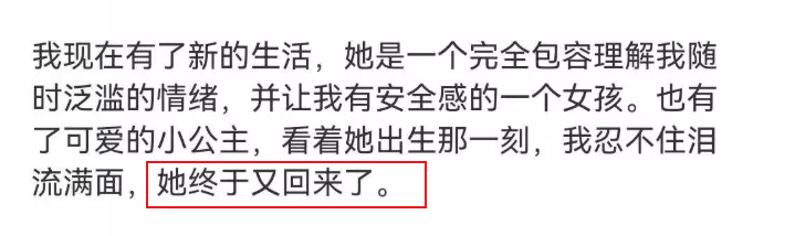 在官宣女儿的存在时,也不忘带一下已亡人“她又回来了”。
