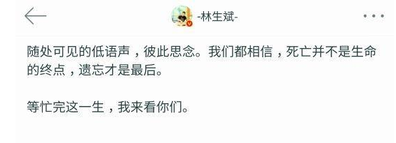 文字很长,分开说就是,在网上一直以深情怀念妻儿形象示人的林生斌,在今年清明节时还在对亡妻和去世的孩子说“等我忙完这一生,我就来找你们”,但那时她的女儿似乎也才出生。