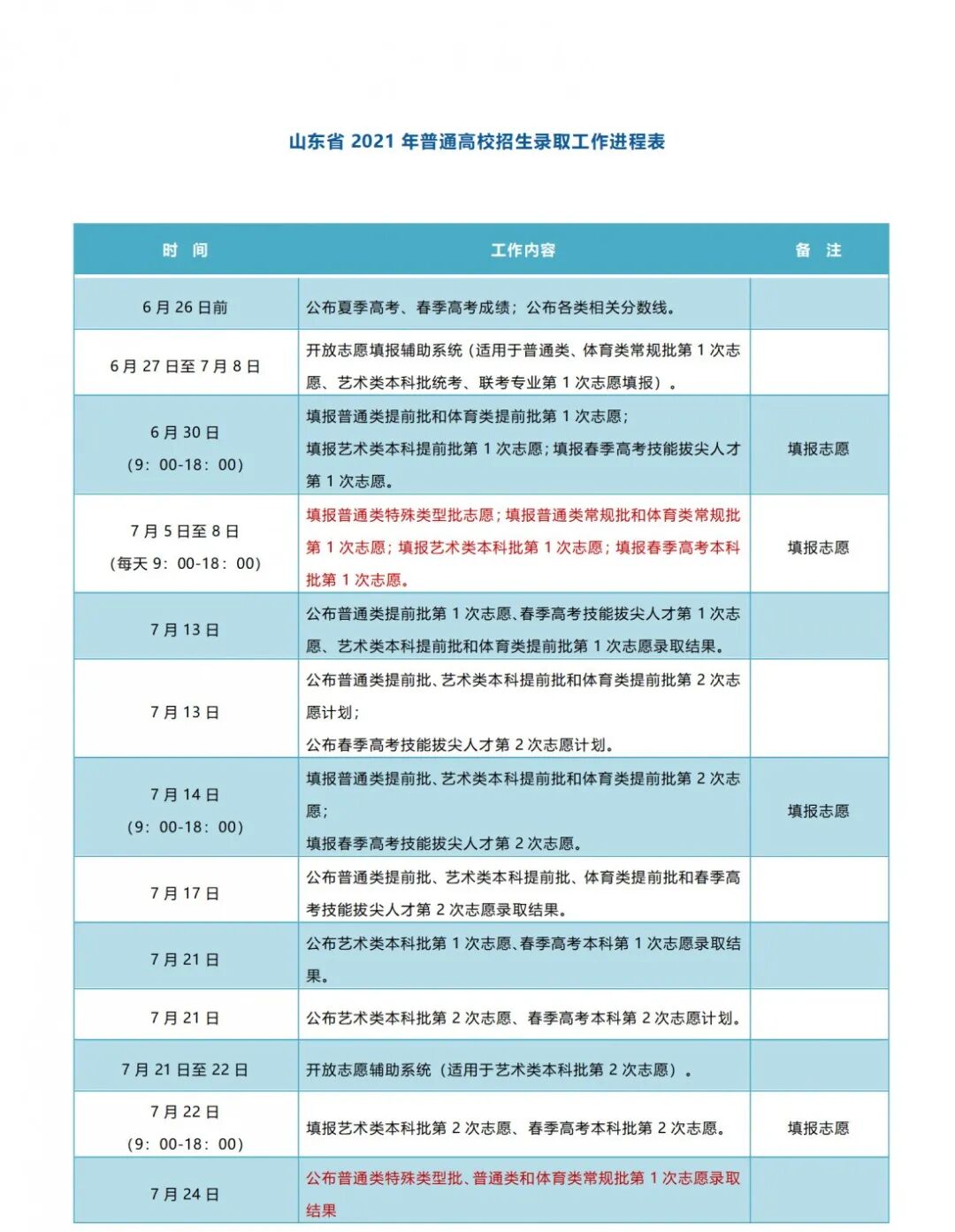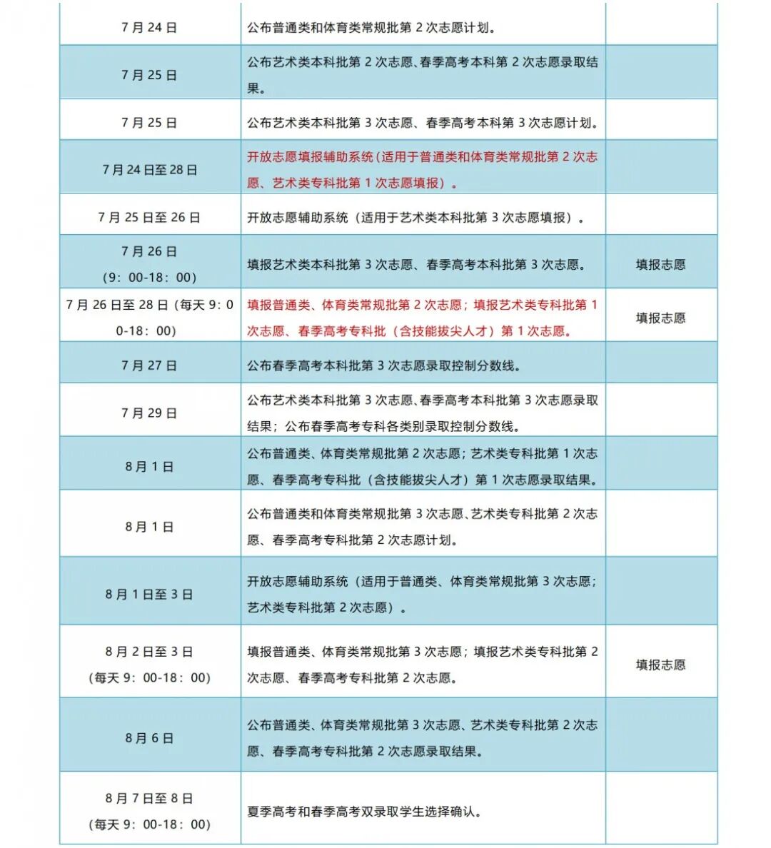 答:7月24日,公布普通类特殊类型批、普通类和体育类常规批第1次志愿录取结果。