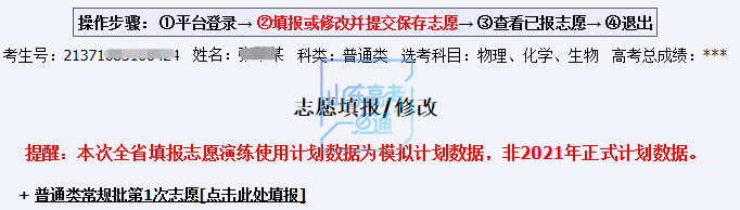 注意:填报志愿系统仅保留本次填报志愿信息。