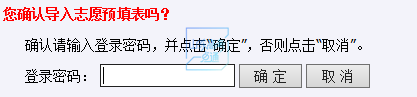 输入个人登录密码后、点击“确定”导入志愿预填表,如下图:
