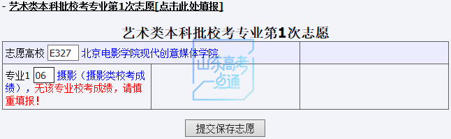 以艺术类考生7月5日填报本科批志愿为例,考生登录系统后,各志愿菜单显示如下图: