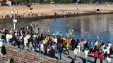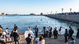 文章蓝天白云间“名场面”:海鸥翩跹,人鸥同乐